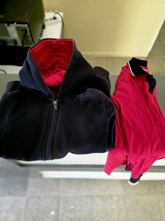 Üst : Kısa - uzun kollu polo yaka bordo renk tişört ve fermuarlı kapüşonlu lacivert renk hırka.